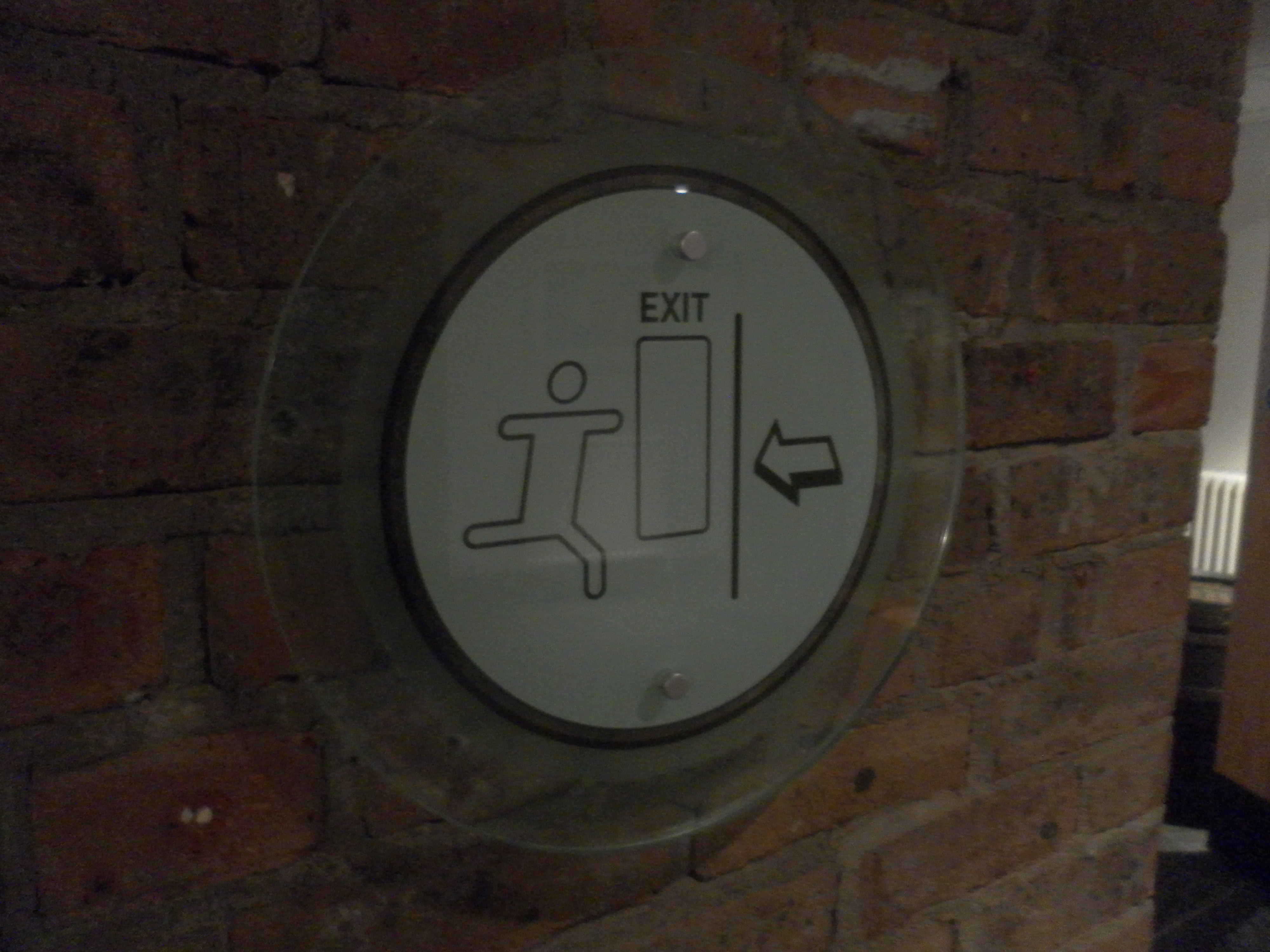 I’m getting a little bit more adventurous with my ‘Exit’ photography i.e. I’m trying to always be ready to take a photo of an interestung sign and I’m being a little bit more selctive of the exit signs I do photograph; there are only so many time you want to see that same white man running towards theat same white box. Yes sometimes there is a giant white arrow in his way but still…
